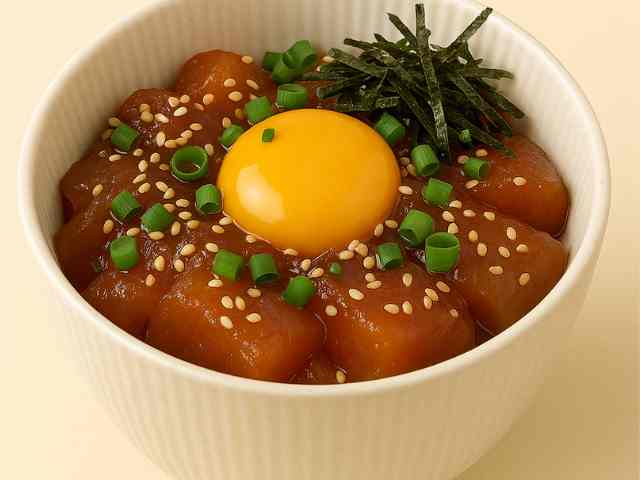 ピリっと甘辛味がやみつき♪ ネギトロユッケ丼。