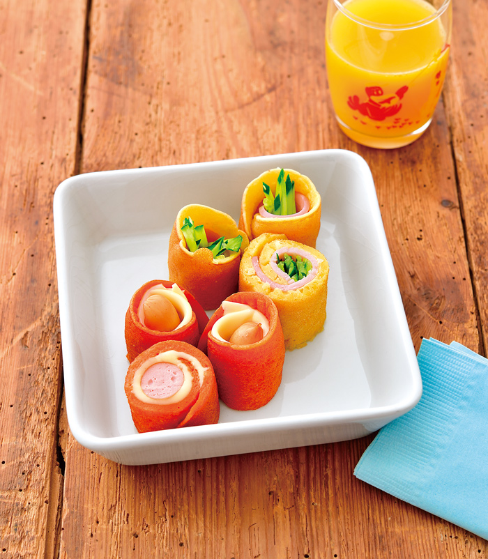 子どもよろこぶ「お弁当おかず」レシピ7選🍱✨ 定番おかずからかわいい映えおかずまで揃っているので、ぜひ日頃のお弁当作りにお役立てくださいね①『鮮やか!彩り卵焼き』 . 調理時間:20分 費用:300円程度 .材料2人前 卵 2個 カニカマ 計45g6本 小ねぎ。