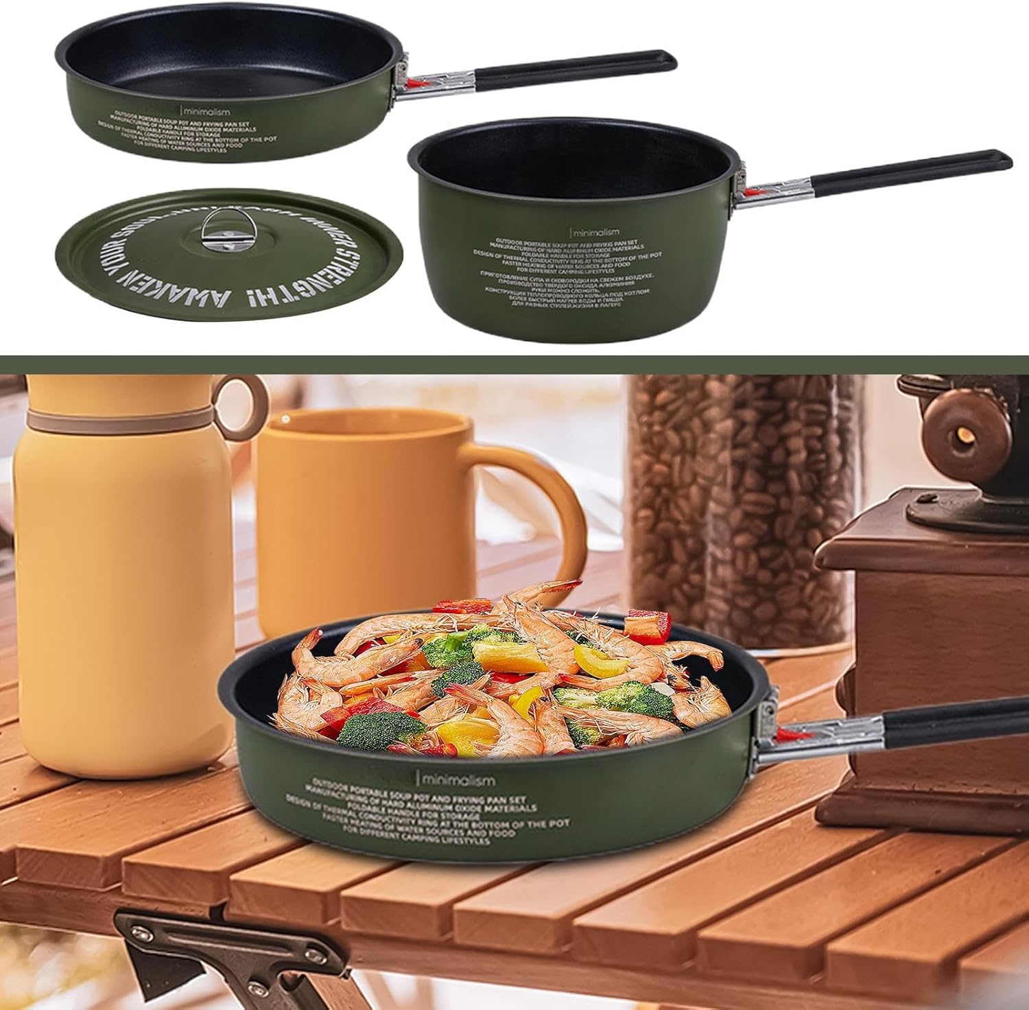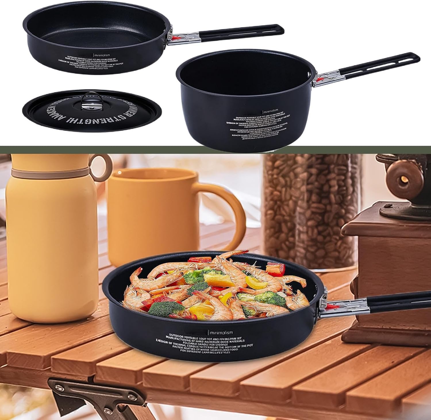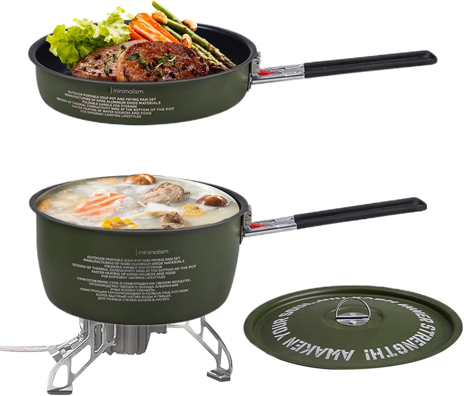 キャンプクッカーセット,キャンプ用ポットとフライパンセット取り外し可能ハンドル 均一加熱 煮込み・炒め調理器具 アウトドア 家 キャンプ用ポットセット- キャンプ用ポットとフライパンセット,取り外し可能ハンドル 均一加熱 煮込み・炒め調理器具 アウトドア 家。
