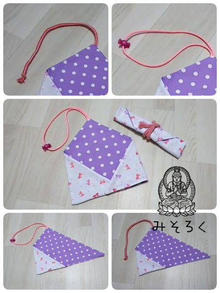 トリオセット、コップ、ランチョンマットが入るサイズの巾着は?: うろこのあれこれハンドメイド。