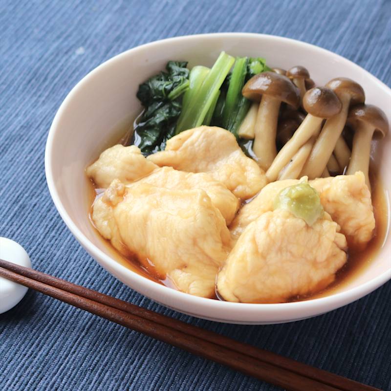 お鍋で簡単、醤油麹でふっくら胸肉の蒸し鶏。