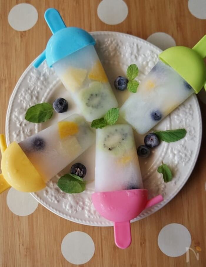 型抜きフルーツのカルピスかき氷子どもと楽しむ可愛いかき氷レシピ vol.3HugMug -親子で楽しむファッションやライフスタイル情報を届けるママメディア - E・レシピ 1 2ページ。