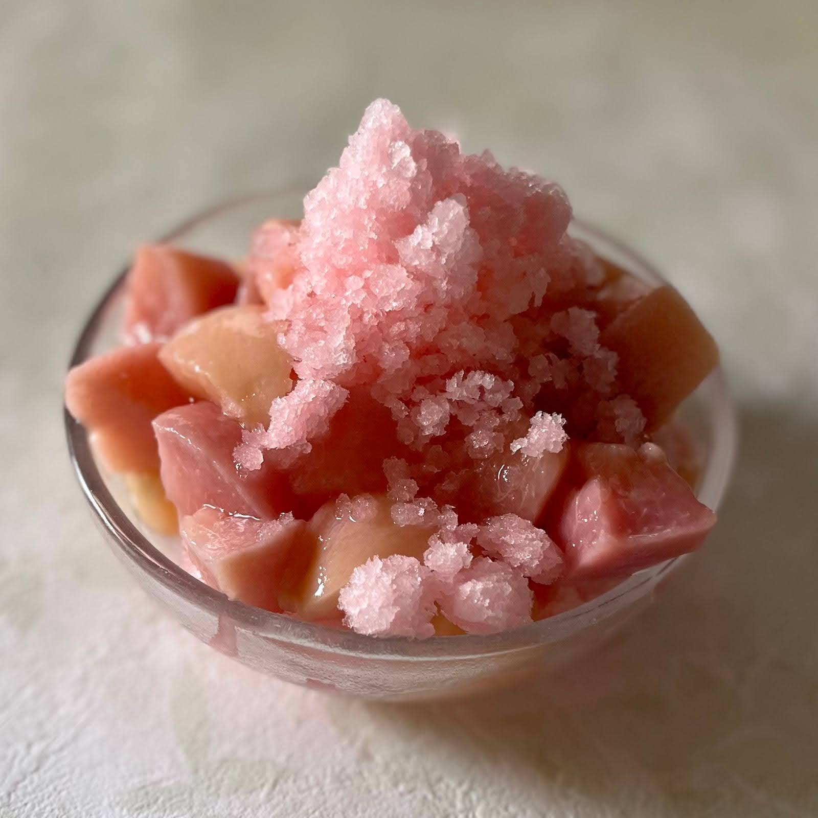 桃のかき氷 カルピス生姜シロップがけFuruFumuフルフム。