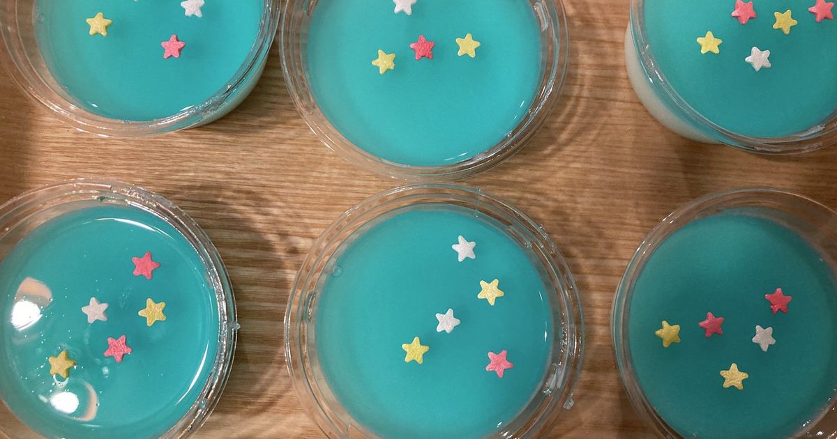 ., 👇レシピ載せてます👇, ., 毎年恒例のカルピス×ブルーハワイの, 七夕ゼリー!🎋, ., レシピ載せてるのでよかったら,作ってみてくださいね ᵕ̈* ., .,*材料 100ccの容器4個分,カルピスゼリー部分 , ・カルピス 原液100㏄, ・水200cc, ・粉ゼラチン3g, .,ブルーハワイゼリー部分 ,。