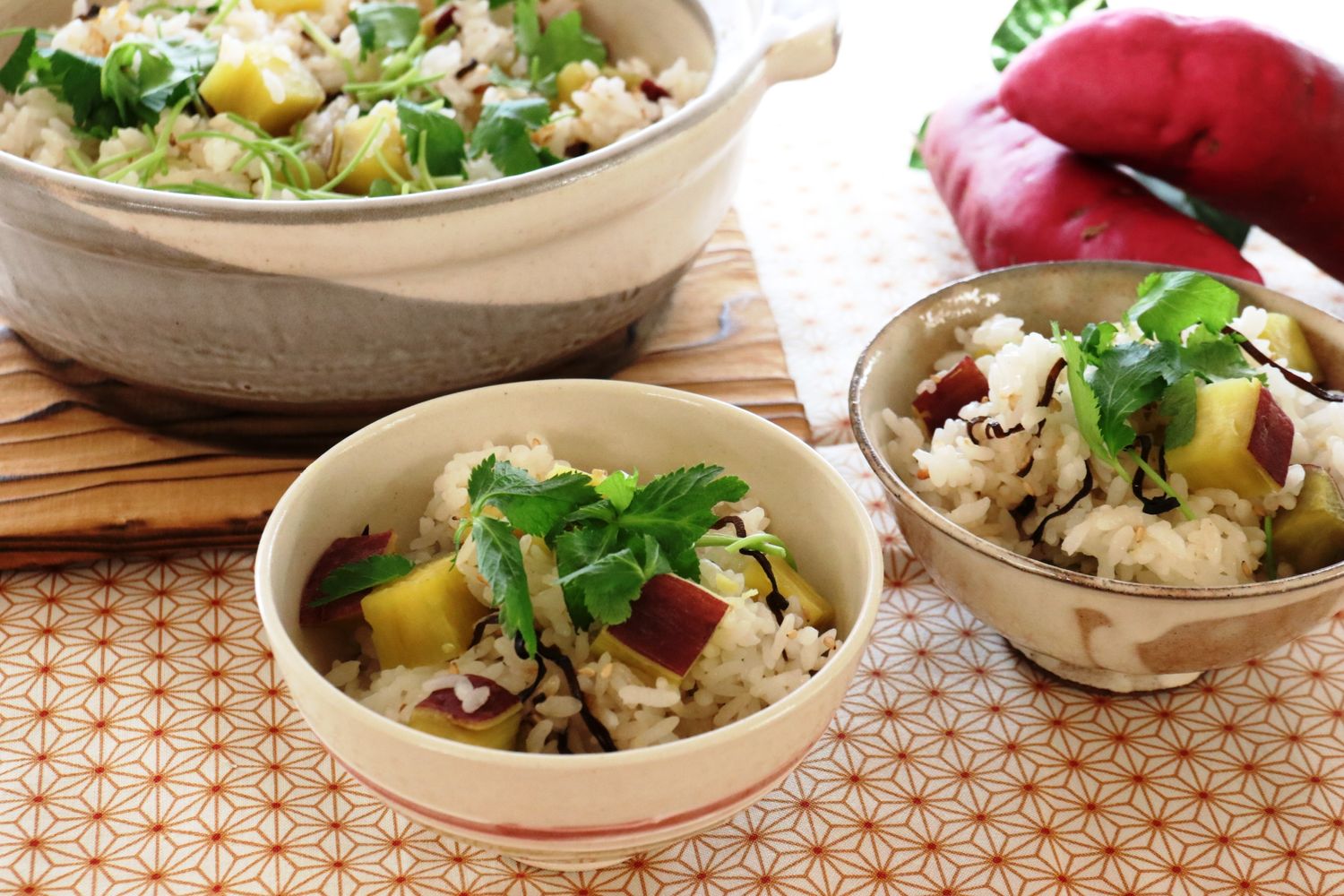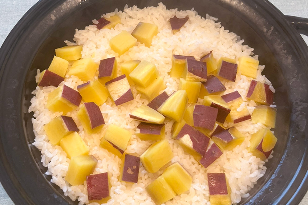かまどさん」で作る「さつまいも&ガーリックごはん」長谷園の週刊webレシピ。
