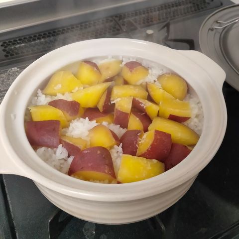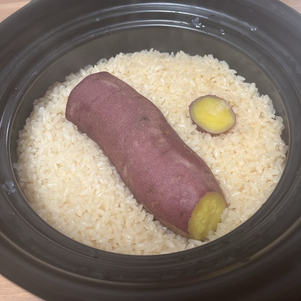 さつまいも丸ごと!土鍋で炊き込みご飯。