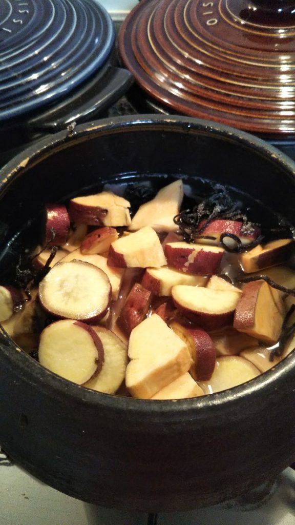 昆布の旨味をプラス♪ さつまいも土鍋ご飯。