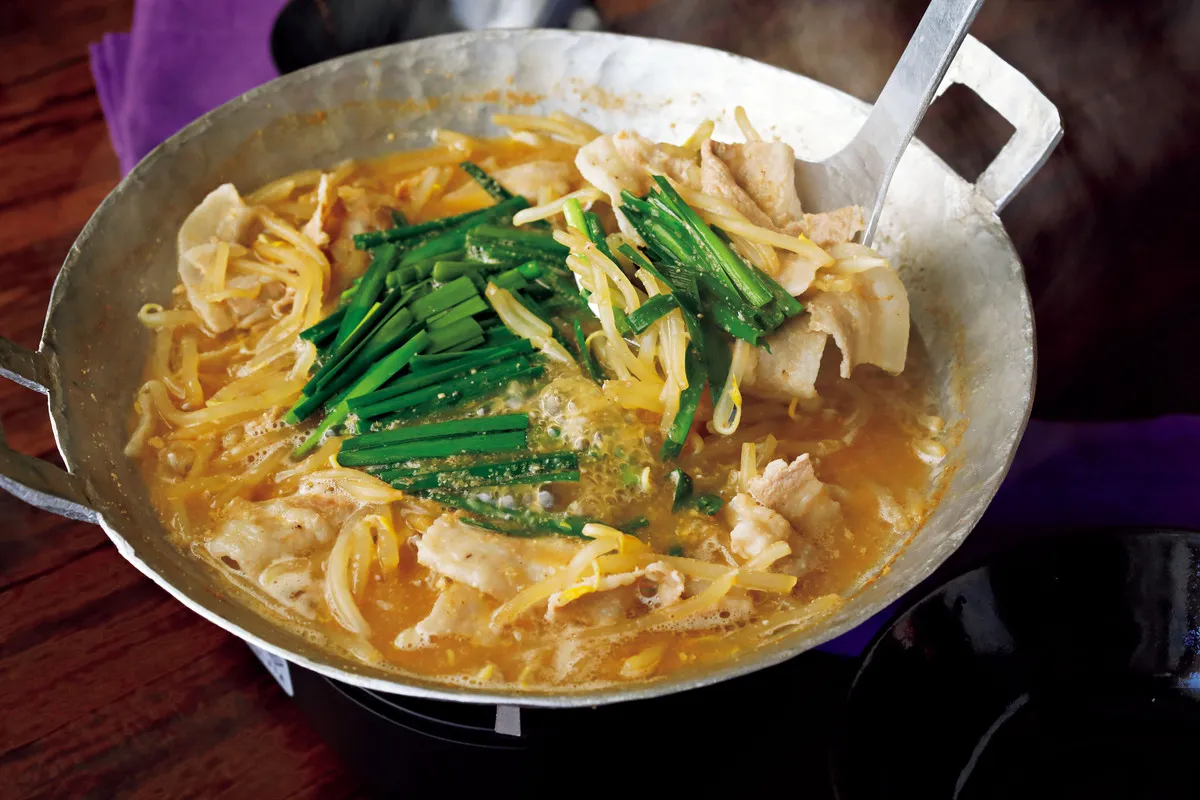 ニラネギもやしと豚肉のスタミナ味噌鍋。