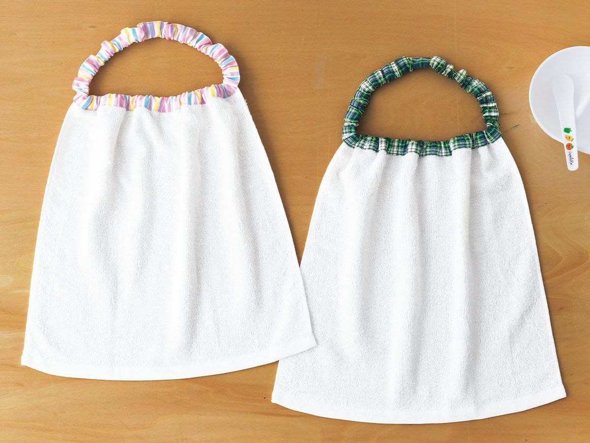 タオルエプロンの作り方お食事エプロン簡単手縫いでも出来る。