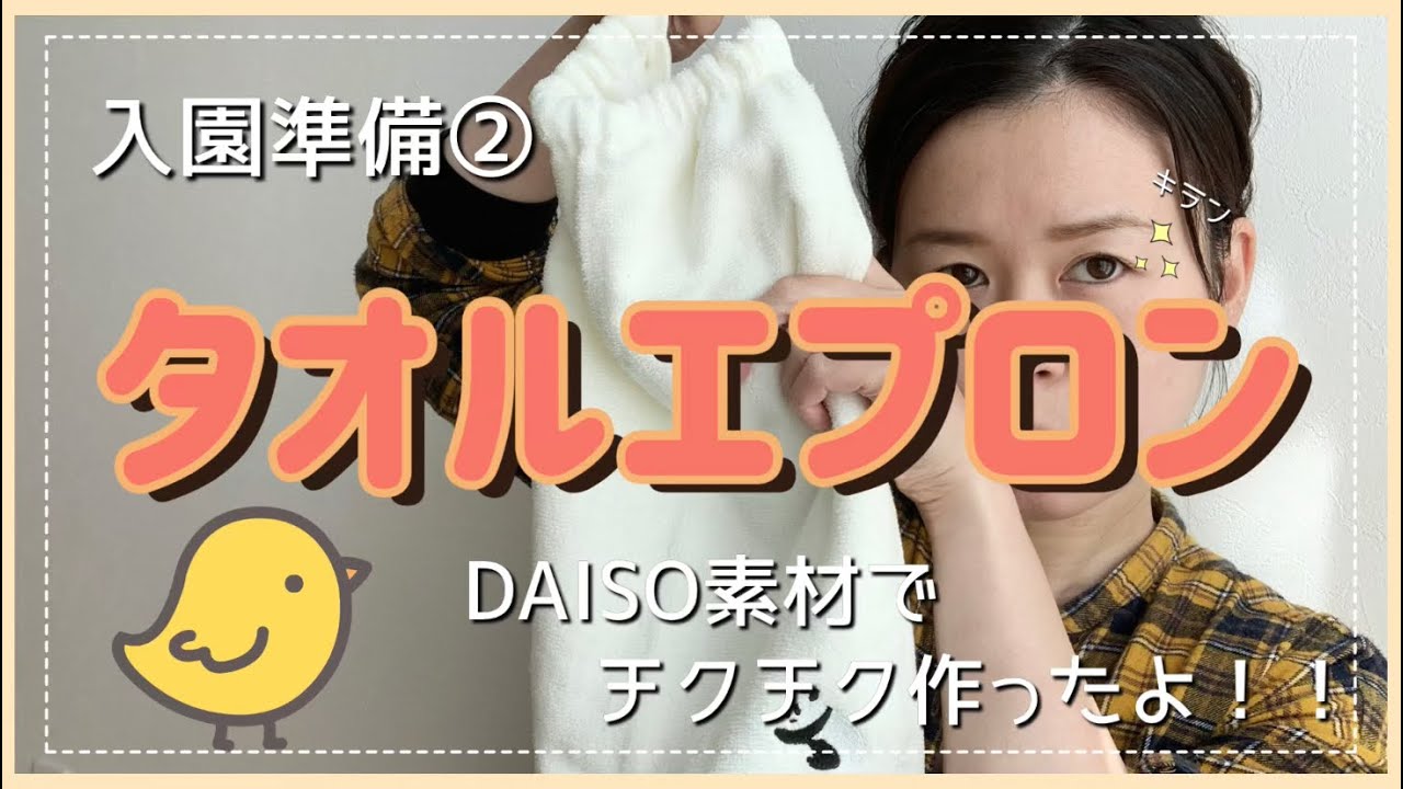 タオルエプロンの作り方100均のタオルでエプロンを作る方法子供のエプロン入園準備タオルDIYセリアのタオルでエプロン。
