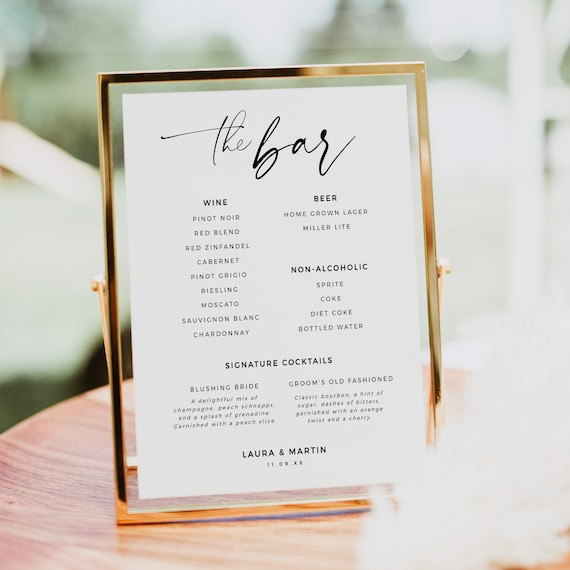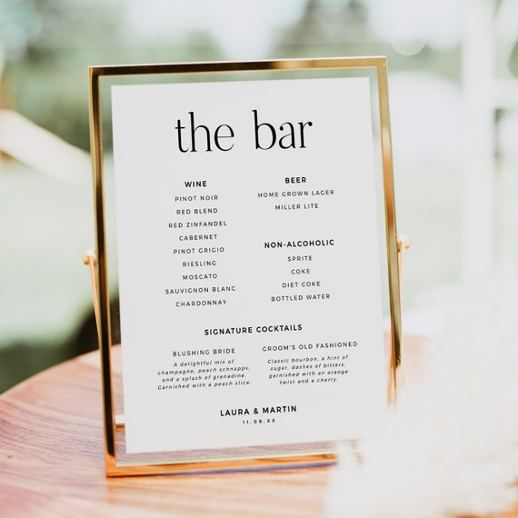 モダンなドリンク メニュー テンプレート、ミニマリスト ウェディング バー メニュー、シンプルな印刷可能なウェディング ドリンク メニュー、バーサイン、ウェディング ドリンク 8x10、5x7 - BAS10 - Etsy 日本。