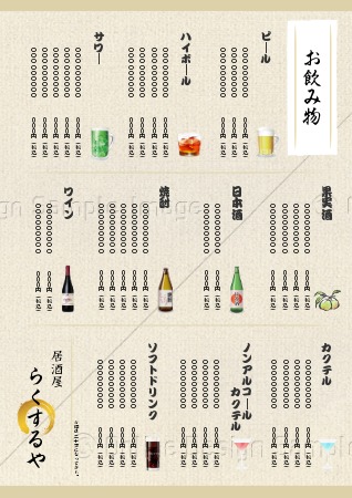 居酒屋のドリンクメニューの無料メニューテンプレート 4913 - デザインAC。