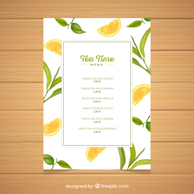 ドリンクリスト付きのティーメニューテンプレート無料ベクトル素材。