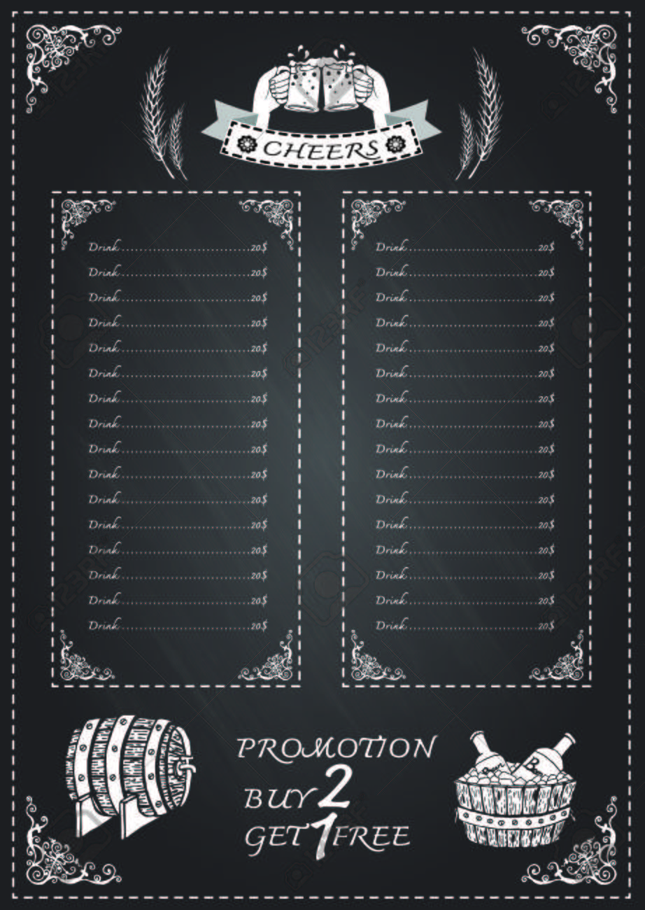 ビールのメニュー、ドリンク メニュー黒板テンプレート デザインのイラスト素材・ベクター Image 42713243。
