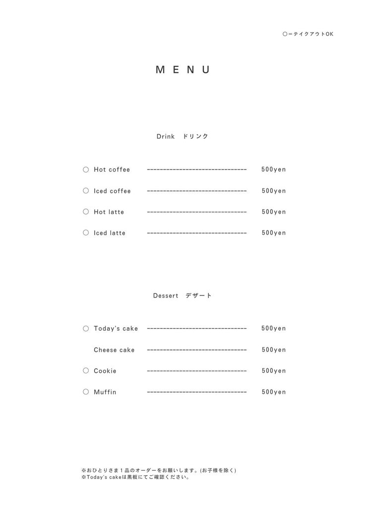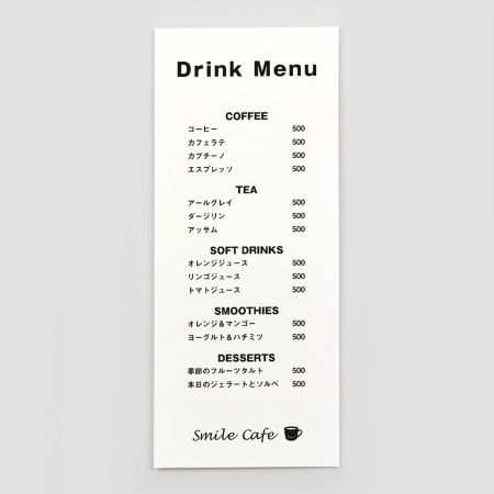 A0013-0001ドリンクメニュー 1片面 シンプル ロゴattaにおまかせ 飲食店用品・印刷通販のatta アッタ。