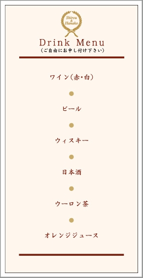 006-ドリンクメニュー』結婚式DIY誰でもできるテンプレート-無料で使えます - narunico なるにこ ウェディングプランナ。