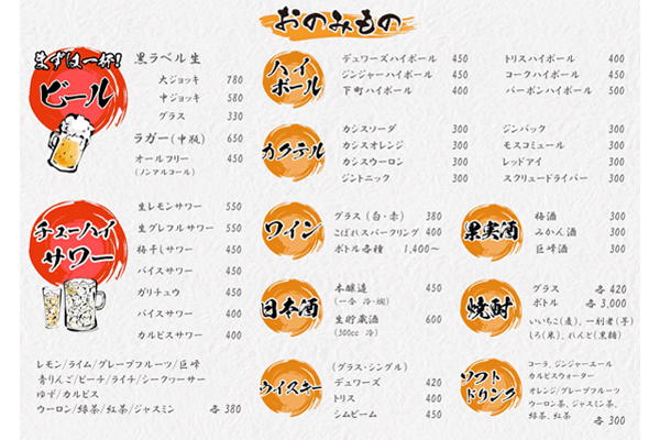メニュー表 ※大衆食堂ドリンク無料の雛形・書式・テンプレート・書き方ひな形の知りたい。