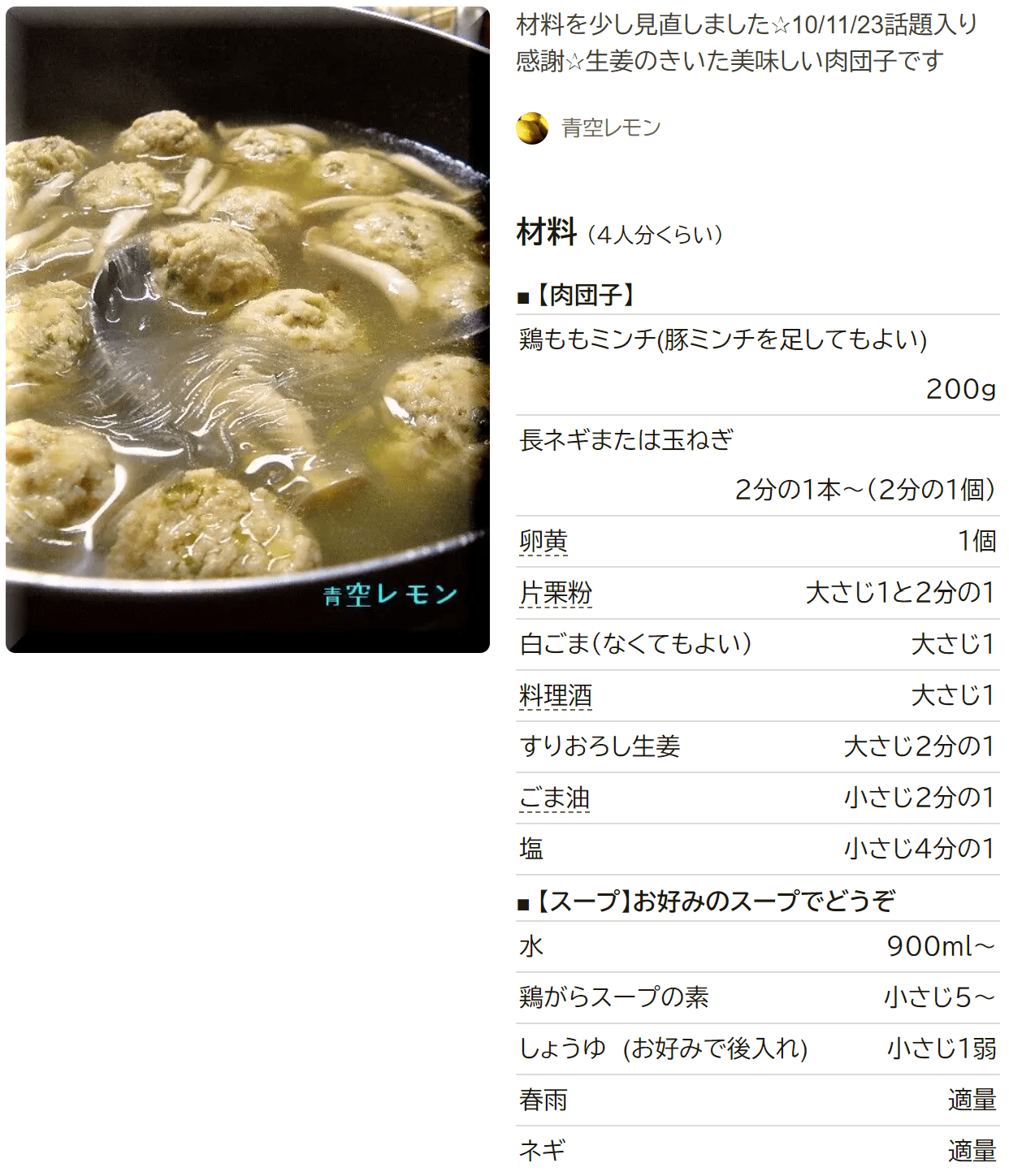 人気1位鶏つみれの殿堂入りレシピTOP11 つくれぽ1000 から厳選! ちそう。