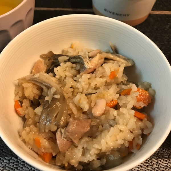 炊き込み鶏めし 白だしで作る、ごろごろ具材の簡単炊き込みご飯♪。