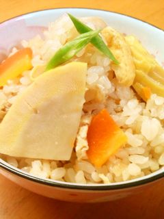 白だしで作る♪筍と鶏肉の炊き込みご飯。