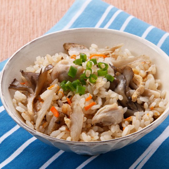 鶏肉とまいたけの炊き込みご飯 つゆの素使用。