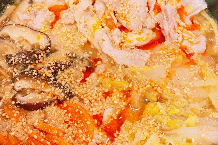 濃厚♡ピリ辛豆乳ごま味噌スープ🍲。