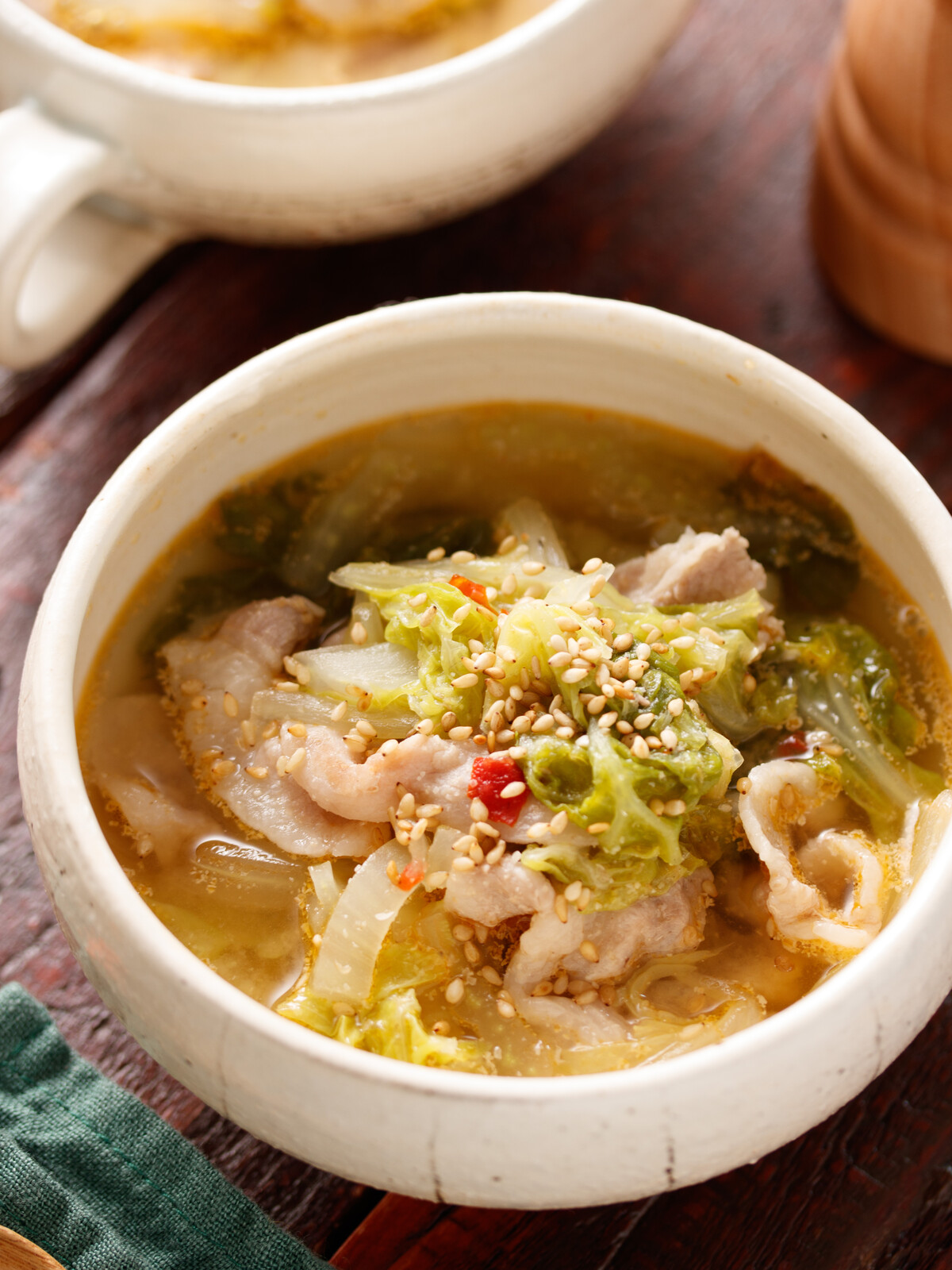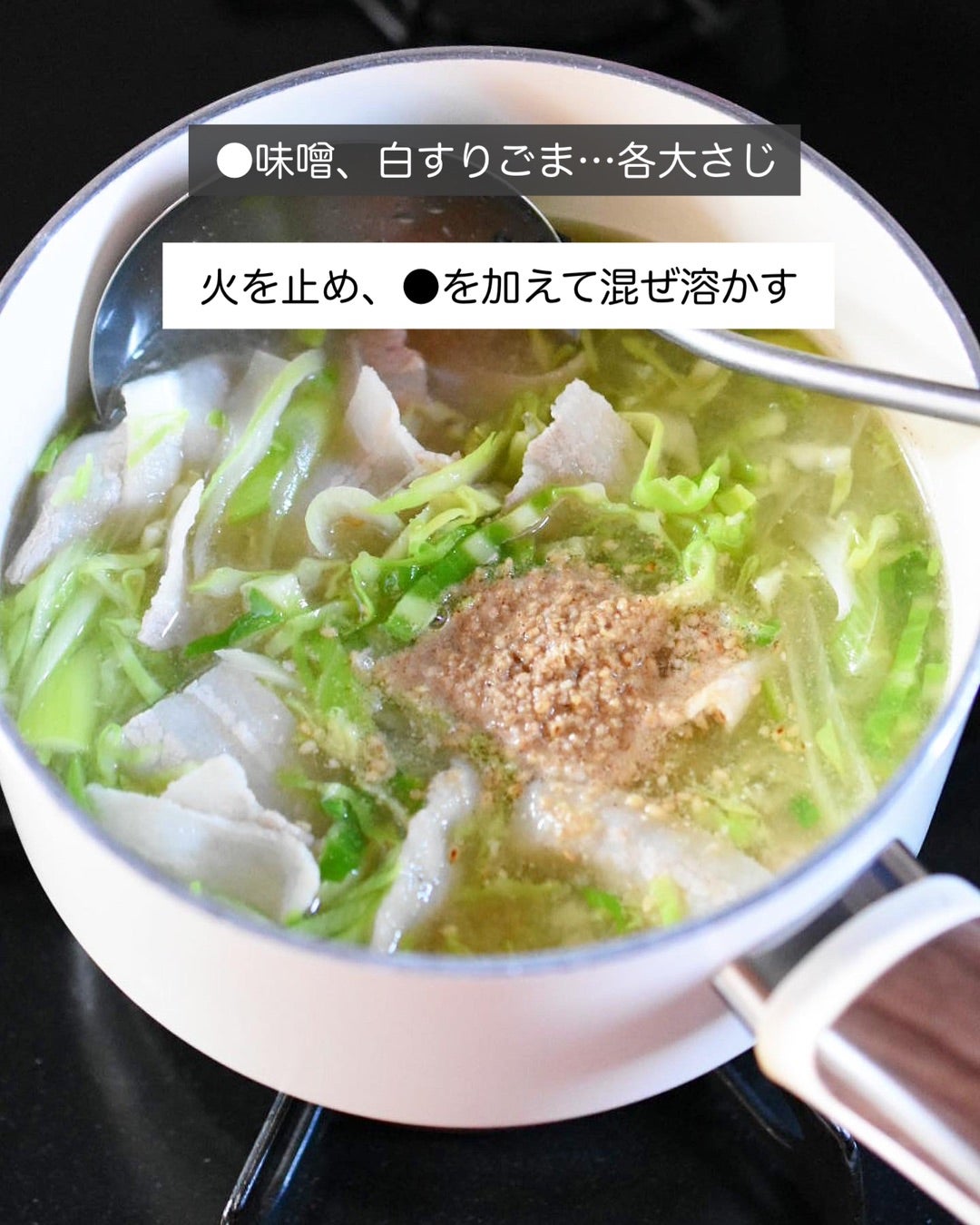 10分で大満足♪豚キャベツのごま味噌スープラクうま簡単スープ。