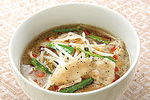 もやしと豆腐の担々風ごま味噌スープオリジナルレシピスチームオーブンレンジ26Lアイリスオーヤマ。