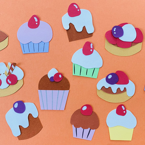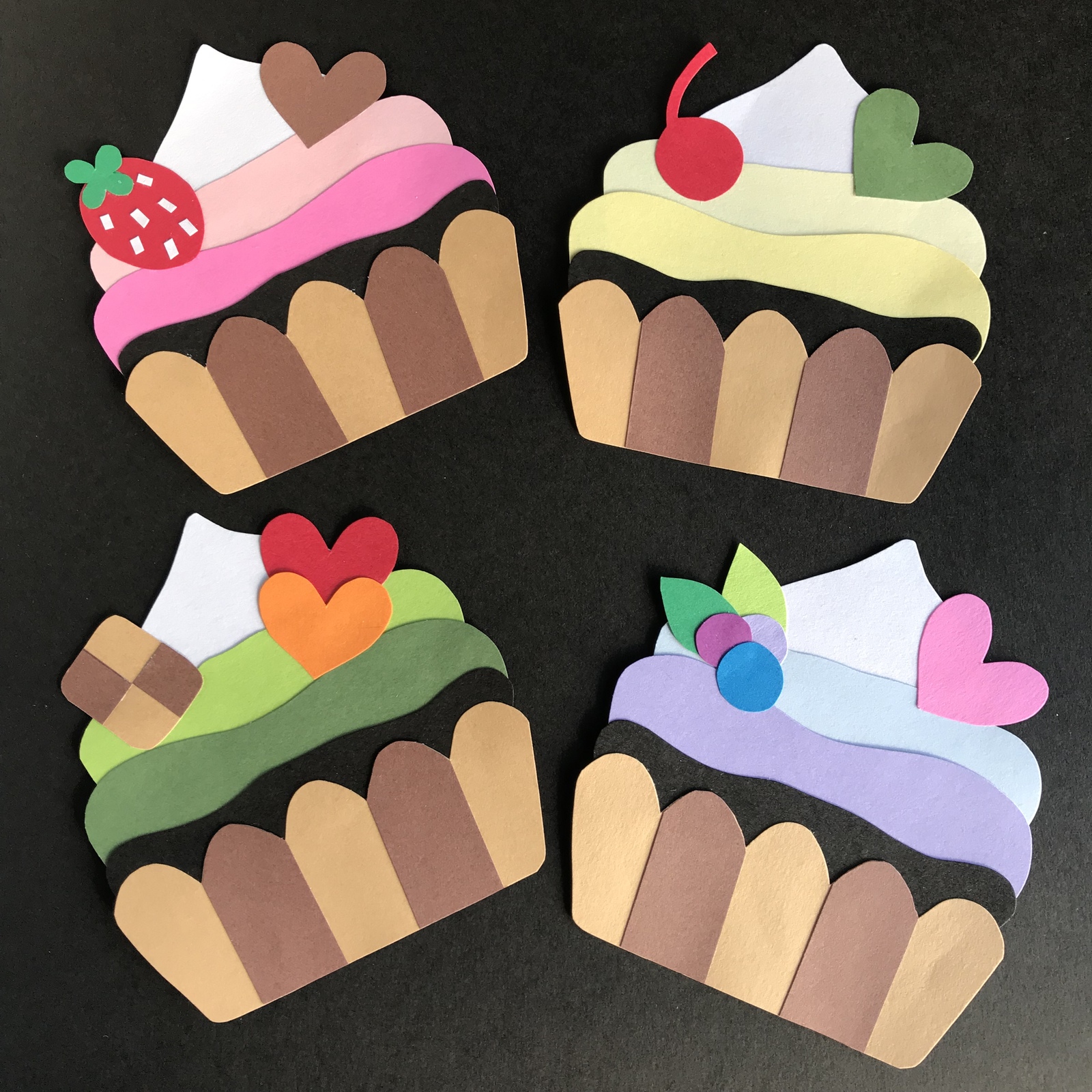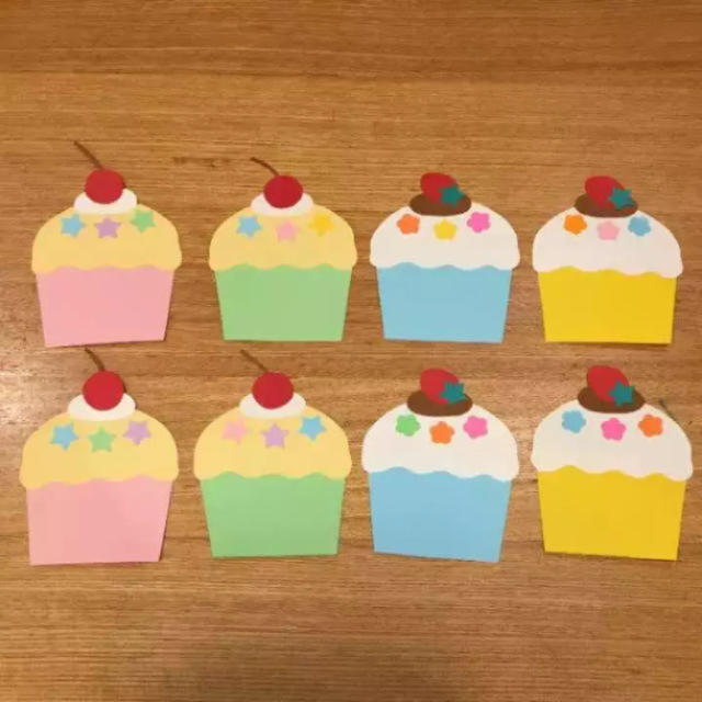トッピングなし 色画用紙のカップケーキ♪ メッセージカード、壁面飾り、製作 誕生日、お祝い、敬老の日 保育園、幼稚園 切り絵 かみもこ 通販16482352Creema クリーマ。