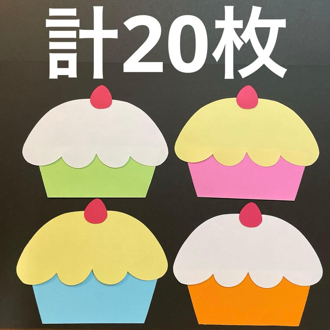 色画用紙のカップケーキ♪ メッセージカード、壁面飾り 誕生日、お祝い、敬老の日 パステルカラー 春夏秋冬 保育園 幼稚園 切り絵 かみもこ 通販16464675Creema クリーマ。