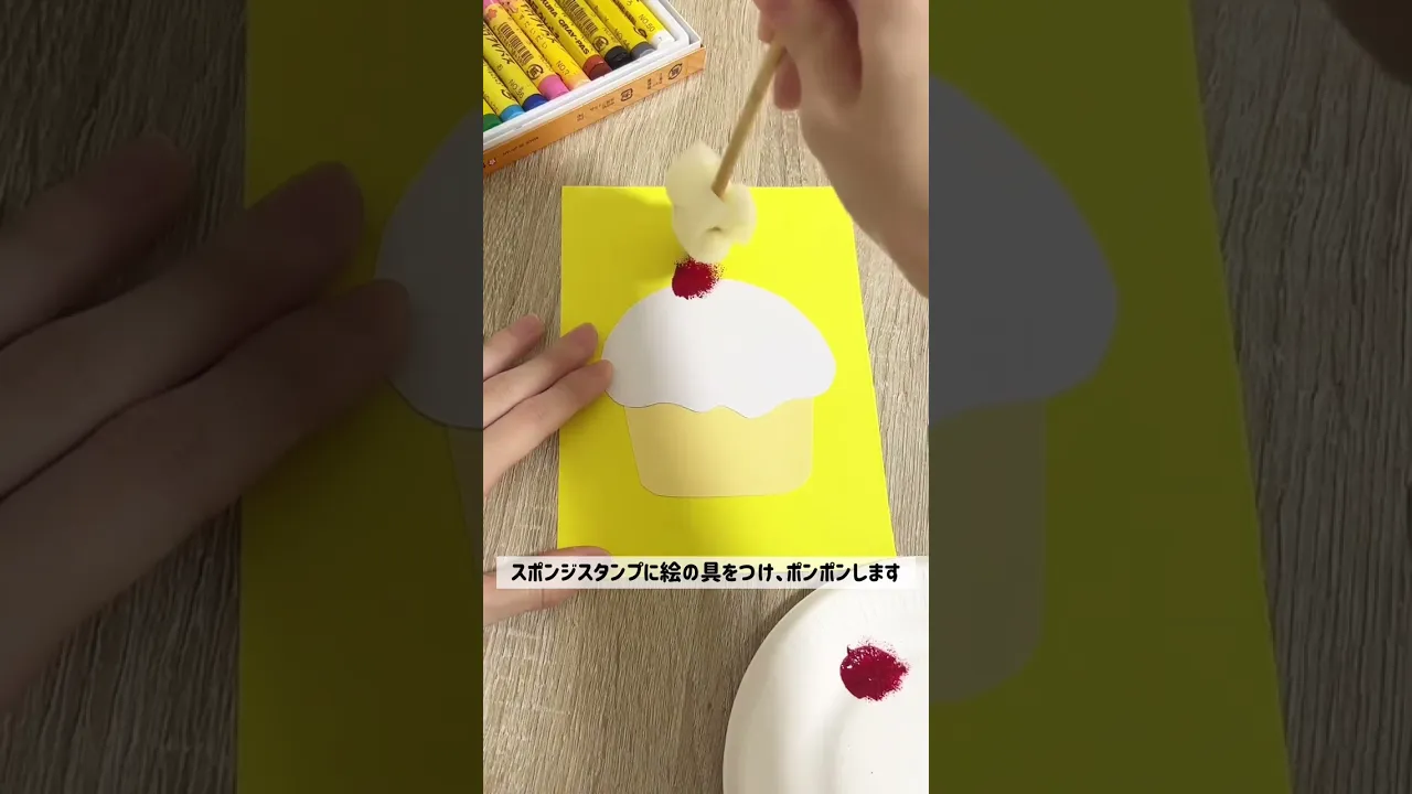 0~5歳児向け製作 スポンジスタンプでいちごのケーキを作ろう!🍓保育製作保育士保育の引き出し 子供と一緒に簡単製作作って遊べる人気製作スポンジスタンプshorts。