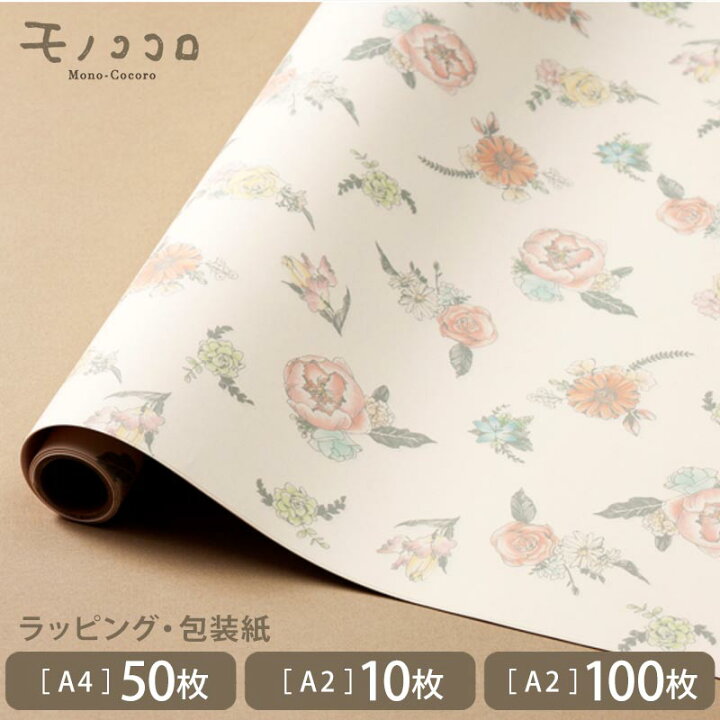 花柄・フルーツ柄薄葉紙 楽天市場 包装紙 優しい色合いの花柄A2・10枚 100枚A4・50枚 メール便OK ボタニカル調の優しいデザインが素敵な雰囲気のフラワー包装紙 おしゃれ ラッピングペーパー母の日 スプリング 敬老の日 イベント ショッピングペーパー。