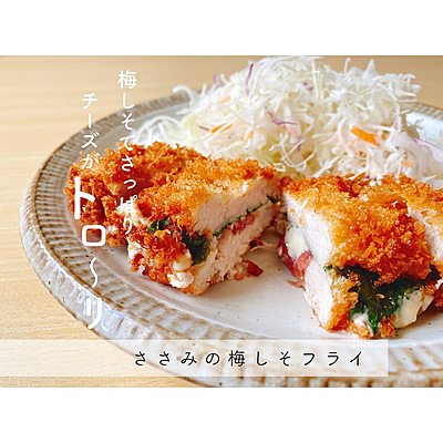 おつまみにもオススメ♪ ささみの梅しそチーズフライ。