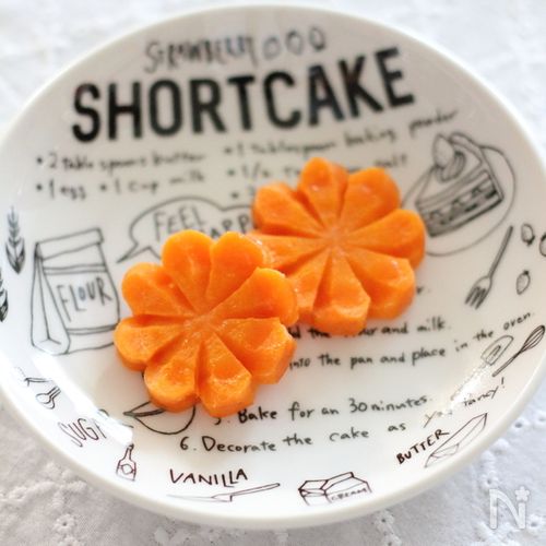 人参のお花グラッセ。レンジで簡単!お弁当の彩りにも♪。