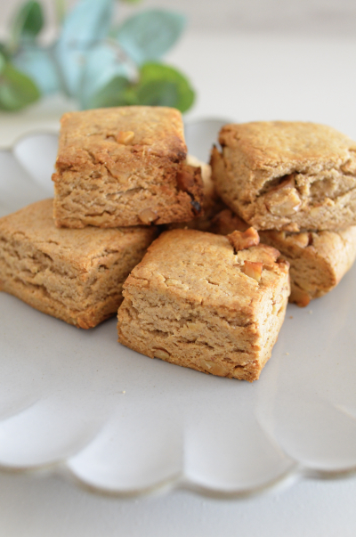 「りんごと豆腐のさくふわスコーン」レシピ!ホットケーキミックスに混ぜて焼くだけ。