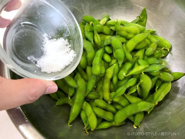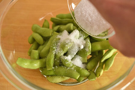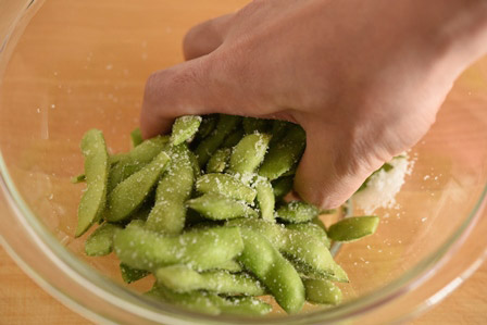 枝豆に塩をもみ込む下ごしらえのきほん 野菜オレンジページnet。