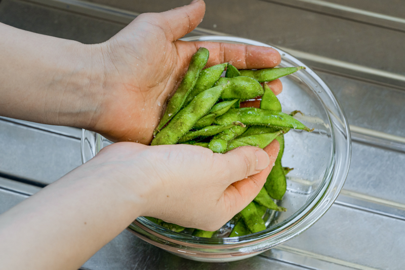 枝豆の塩茹で 下処理と美味しい茹で方。