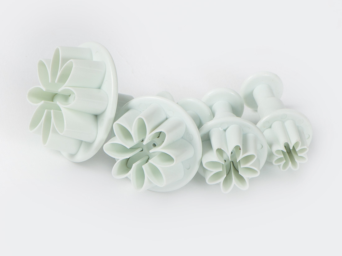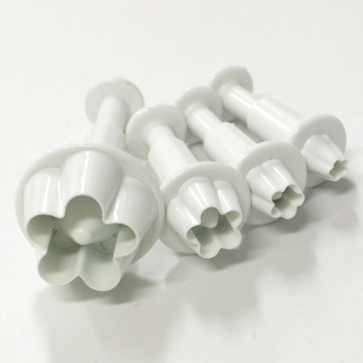 楽天市場 シュガークラフト 抜き型 バネ プッシュ 式フラワー 花 型4個セット 花びら5プラスチック シュガークラフト道具 : 馬嶋屋菓子道具店。