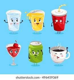 漫画のおかしな飲み物のキャラクター分離型ベクターイラスト。おかしな飲み物の顔のアイコン。熱い飲み物は絵文字。おかしなジュース、笑うコーヒー。 かわいい飲み物の漫画の顔。かわいい飲み物の顔。」のベクター画像素材 ロイヤリティフリー496459369Shutterstock。