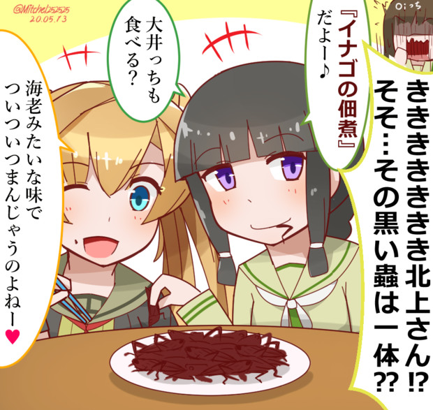 イナゴの佃煮を堪能する北上さん&アブさんミッチェル さんのイラスト - ニコニコ静画 イラスト。