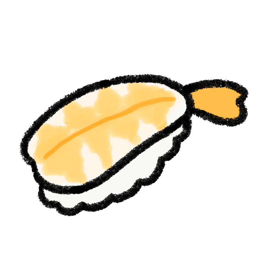 かわいいエビのお寿司 のイラスト - ホビヲノエ。