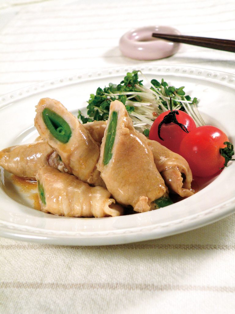 スナップエンドウの豚肉巻き透析食.com 管理栄養士が全レシピ考案!透析患者さん向け食事療法総合サイト。