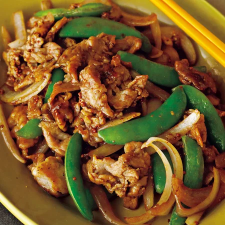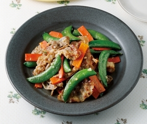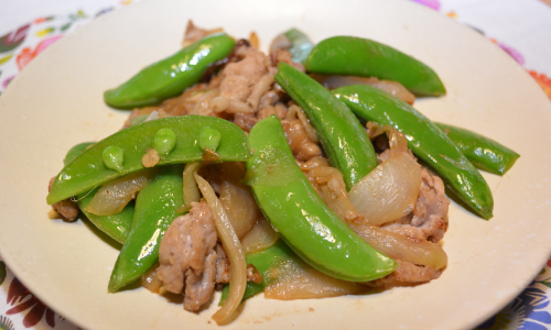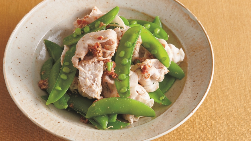 大原千鶴のすやすやレシピ51:豚肉とスナップえんどうの味噌バター炒め。