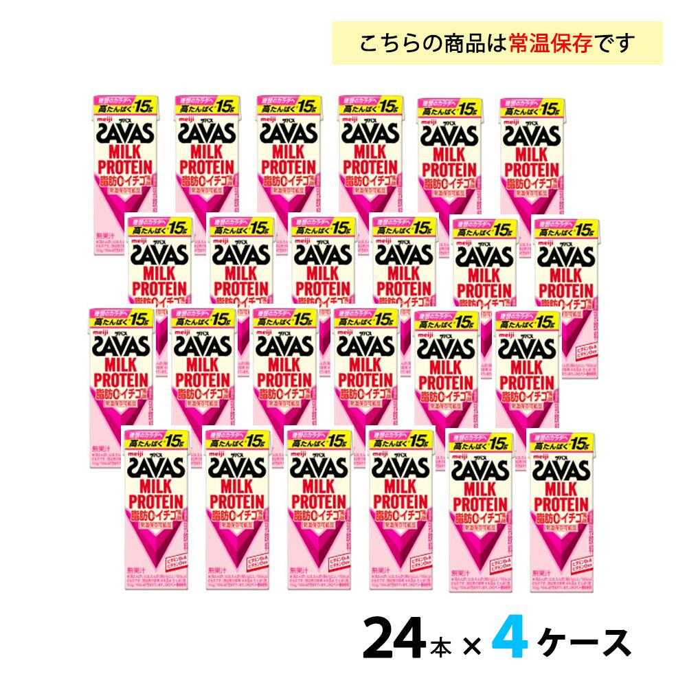明治 ザバス ミルクプロテイン 脂肪0 イチゴ風味 200ml 紙パック 96本24本入×4 まとめ買いSAVAS 高たんぱく 運動 スポーツ乳飲料。