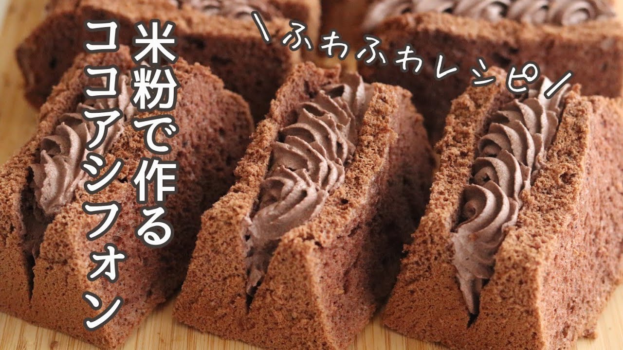 ノンオイルでふかふかもっちり米粉ココアシフォンケーキOil-free Gluten-free! Chiffon Cake fluffy! -YouTube。