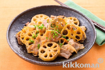 豚バラれんこん 蓮根ごま油香る甘辛しょうゆ味の人気おかず。