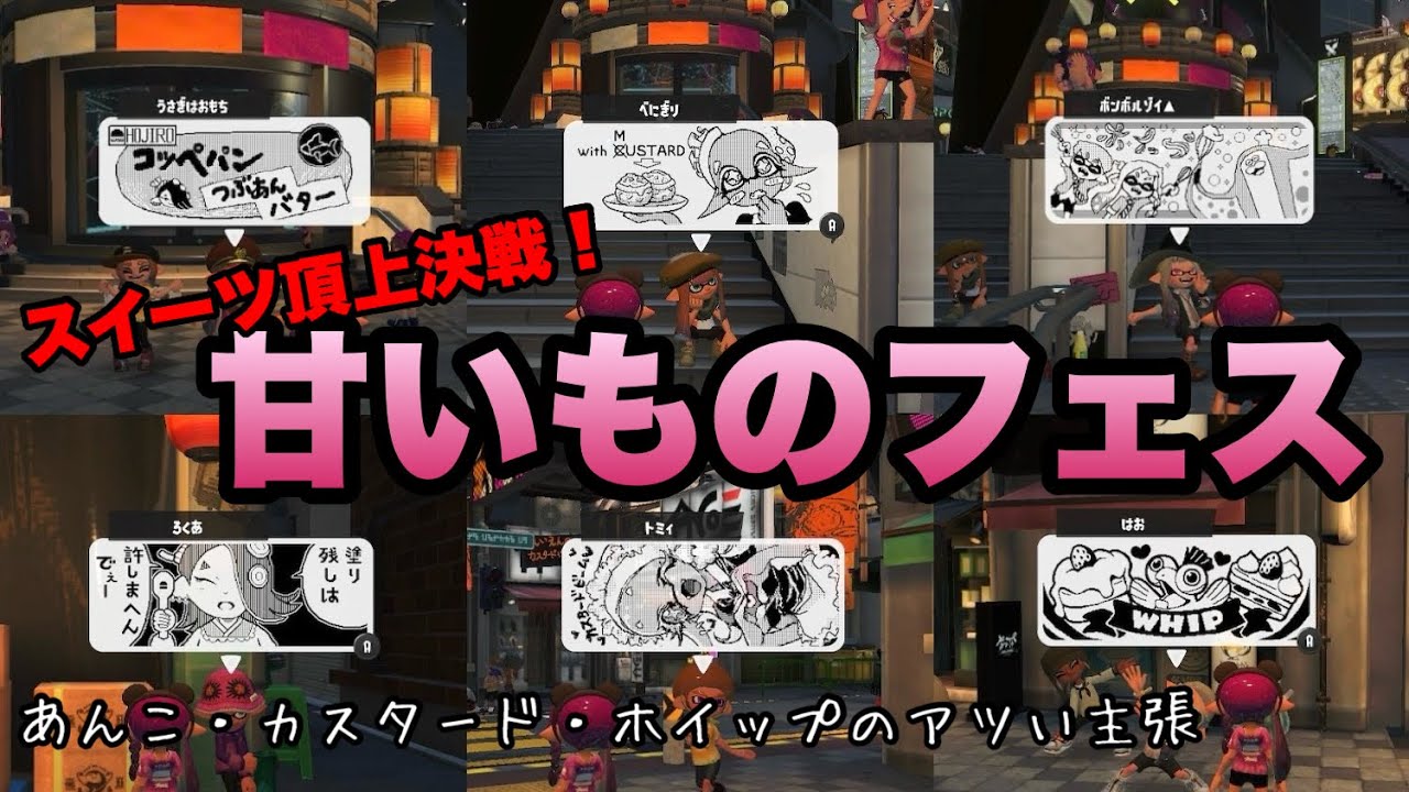 Splatoon スプラトゥーンon X: "スイーツフェス「どれが好き?あんこ vs カスタード vsホイップ」の結果は、12対0対45で「ホイップ」チームの勝利に終わった。 「ホイップ」チームのみなさん、おめでとう!参加された方は、スーパーサザエを忘れずにお受け取り。