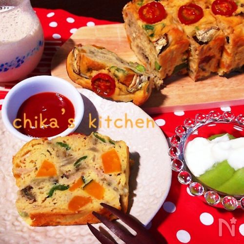 野菜たっぷり、しあわせ朝食 米粉ケークサレ。