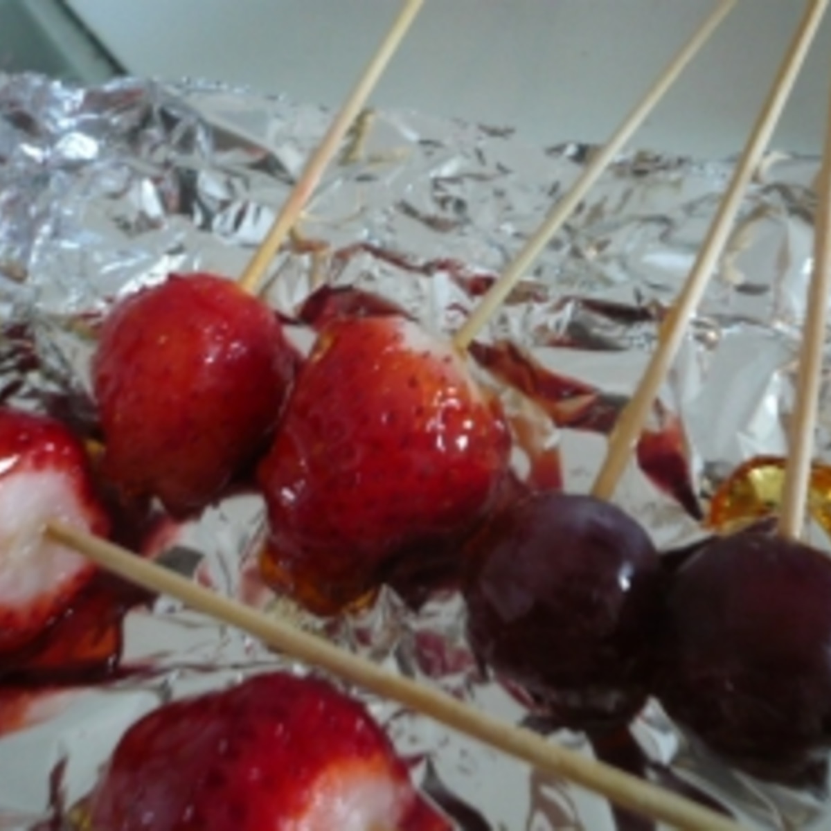 レンジで簡単 いちご飴 ぶどう飴。
