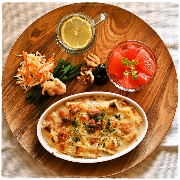 パンと、スープと、グラタンでワンプレート♪ : clairefontaine。